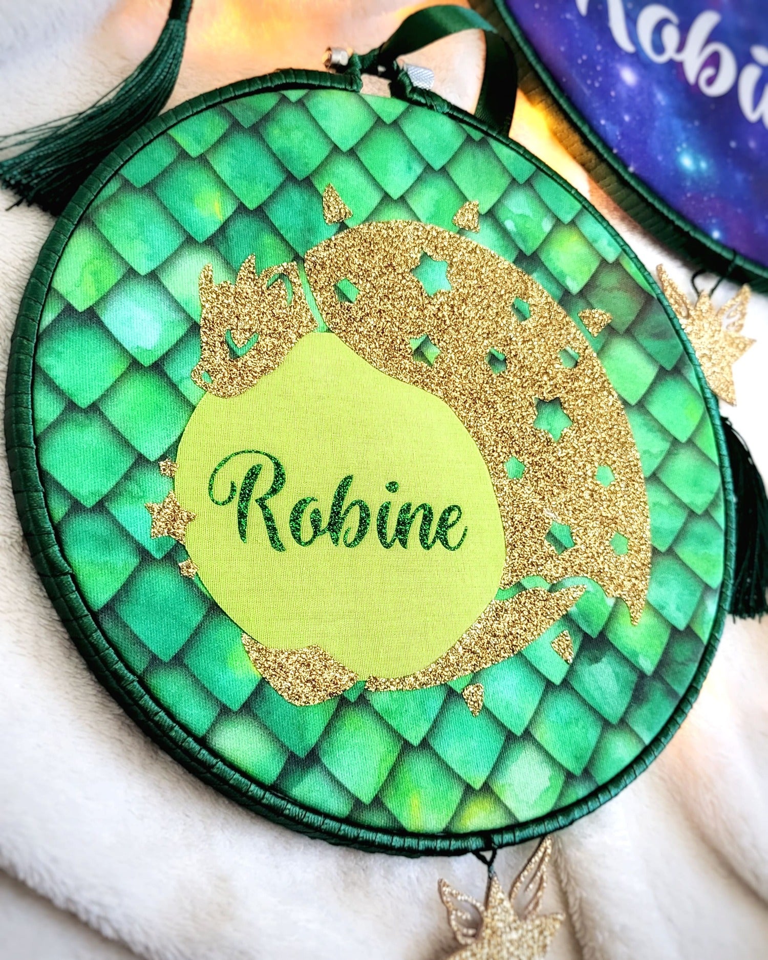 Le tambour Constellation est une création murale personnalisée, réalisée à la main pour accompagner le rituel du coucher et transformer la chambre en un cocon rassurant.